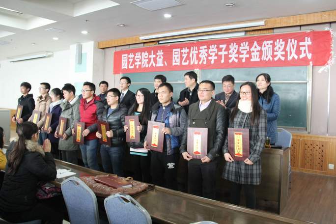 云南大益愛心基金會由云南勐海茶廠和云南大益茶業(yè)集團共同發(fā)起,是中國茶葉行業(yè)企業(yè)首家獨立出資成立的愛心基金會,2014年被云南省民政廳評定為5A等級基金會。2012年,大益愛心基金會與學(xué)校簽訂“愛智美三位一體大學(xué)生公益項目”協(xié)議,并出資40萬元在我校設(shè)立“大益獎學(xué)金”,用于獎勵在校優(yōu)秀學(xué)生。“園藝優(yōu)秀學(xué)子”獎學(xué)金是由中國工程院院士束懷瑞出資設(shè)立,并得到多位學(xué)院優(yōu)秀校友的大力支持,旨在獎勵學(xué)習(xí)成績突出、創(chuàng)新創(chuàng)業(yè)能力強、文體綜合素質(zhì)全面的優(yōu)秀學(xué)生。經(jīng)過層層選拔,此次共評選出大益學(xué)習(xí)之星、大益茶學(xué)之星、大益創(chuàng)新創(chuàng)業(yè)之星、大益自強之星、大益優(yōu)秀學(xué)生干部和大益優(yōu)秀研究生共47人、2014-2015年度園藝優(yōu)秀學(xué)子12人。