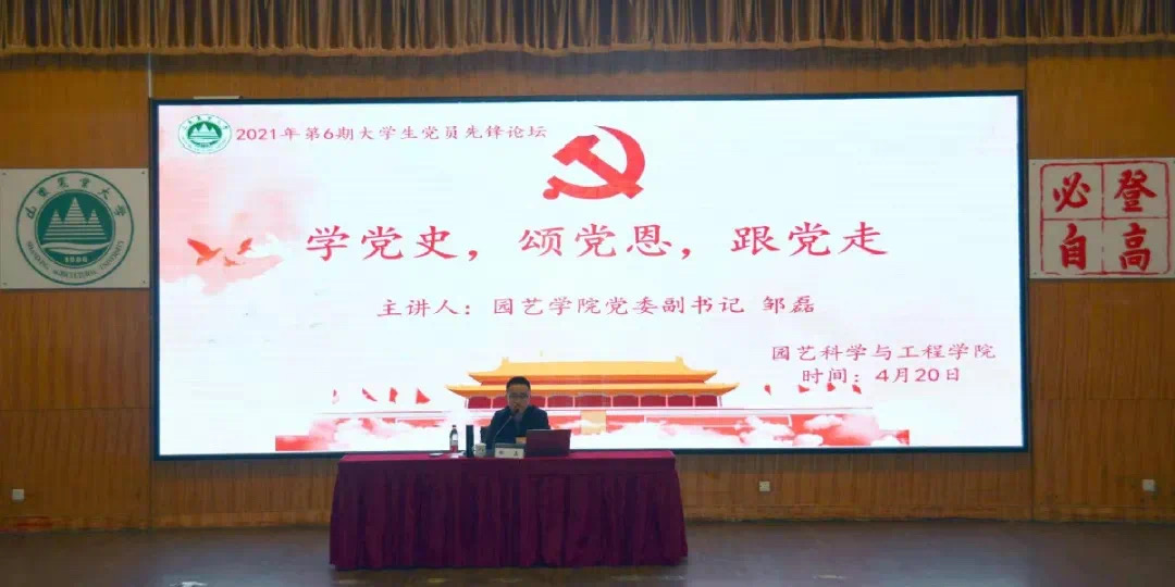 4月20日,園藝學(xué)院舉辦2021年第六期大學(xué)生黨員先鋒論壇,學(xué)院黨委副書記鄒磊以“學(xué)黨史,頌黨恩,跟黨走”為主題,向園藝學(xué)院全體學(xué)生黨員和入黨積極分子作報告。