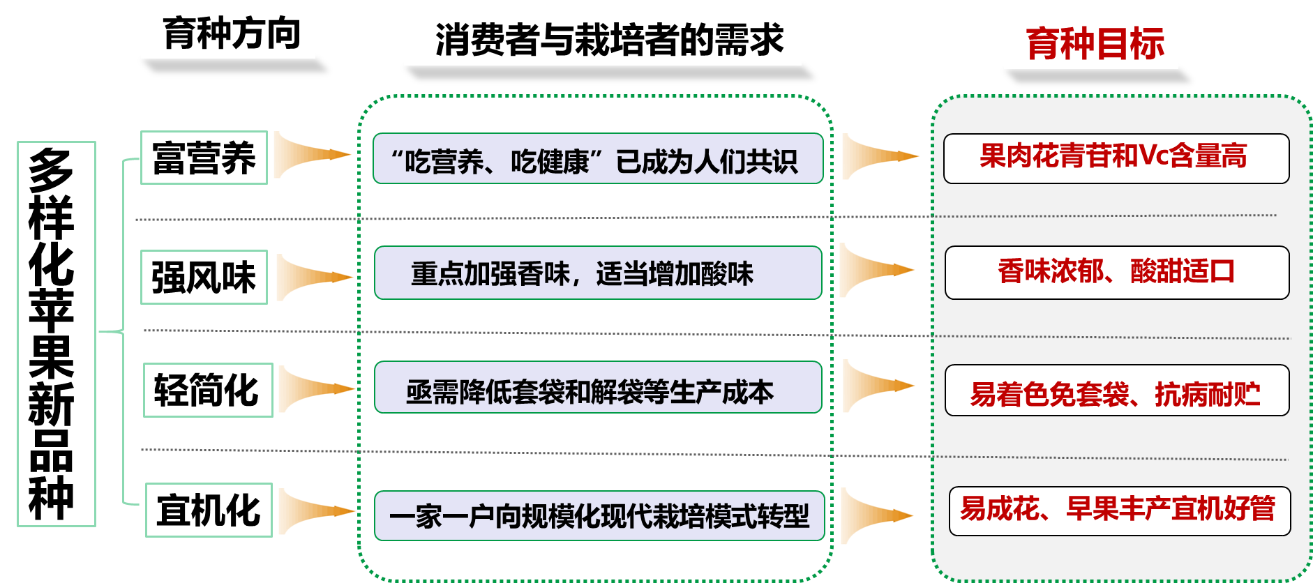 二、創(chuàng)建了“三選兩早一促”的蘋果快速高效育種技術體系,育成并審定了富營養(yǎng)強風味、輕簡宜機化蘋果系列新品種13個,支撐了我國蘋果由量向質(zhì)轉型