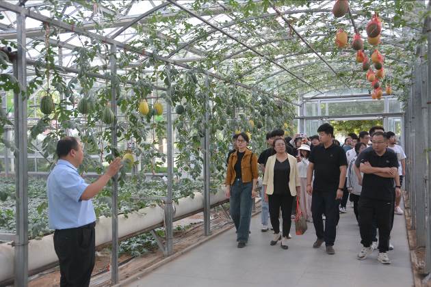 11日清早,師生們準(zhǔn)時(shí)到達(dá)乘車地點(diǎn),熱情飽滿地奔赴本次實(shí)習(xí)第一站、素有“中國(guó)蔬菜之鄉(xiāng)”美譽(yù)的壽光市,參觀了第二十五屆中國(guó)(壽光)國(guó)際蔬菜科技博覽會(huì),感受現(xiàn)代科技賦能下的蔬菜魅力;隨后,大家來(lái)到寒亭區(qū),走進(jìn)全國(guó)最大精品西甜瓜培育綜合體—郭牌農(nóng)業(yè)科技有限公司,參觀了該公司的四季立式種植技術(shù)示范園,體味“郭牌”帶來(lái)的甜蜜、以及其背后所秉持的“匠人精神”;在濰坊自然邦生態(tài)農(nóng)業(yè)科技有限公司,公司創(chuàng)始人、“大國(guó)農(nóng)匠”梁其安先生,結(jié)合“黃金籽”西紅柿品牌的創(chuàng)立和帶領(lǐng)鄉(xiāng)親們?cè)鍪罩赂坏挠H身經(jīng)歷,向大家詮釋了習(xí)近平總書記“新質(zhì)生產(chǎn)力”的強(qiáng)大動(dòng)能,使師生們接受了一場(chǎng)別開生面的思政主題教育;在昌樂(lè)西瓜科技示范園,我校優(yōu)秀校友、昌樂(lè)西瓜研究所趙平所長(zhǎng)向大家詳細(xì)介紹了該縣西瓜的悠久歷史、以及在我國(guó)西瓜產(chǎn)業(yè)中的突出地位,并寄語(yǔ)大家“珍惜在校之美好時(shí)光,不負(fù)韶華、勇攀高峰”。